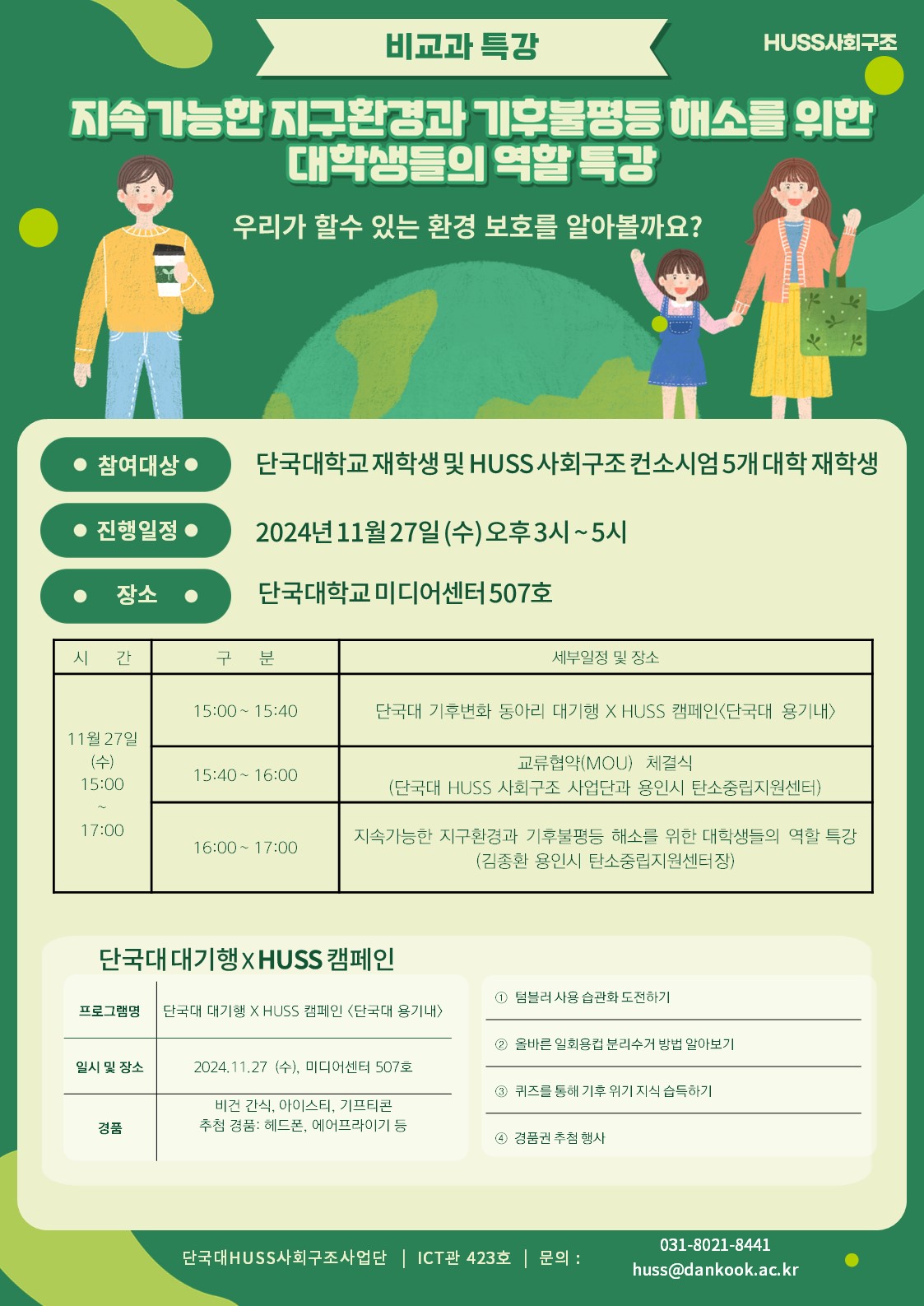 상명 [비교과] [HUSS 인문사회 융합인재양성사업단] 인문사회융합인재양성사업(HUSS) ‘지속가능한 지구환경과 기후불평등 해소를 위한 대학생들의 역할' 프로그램 안내 -